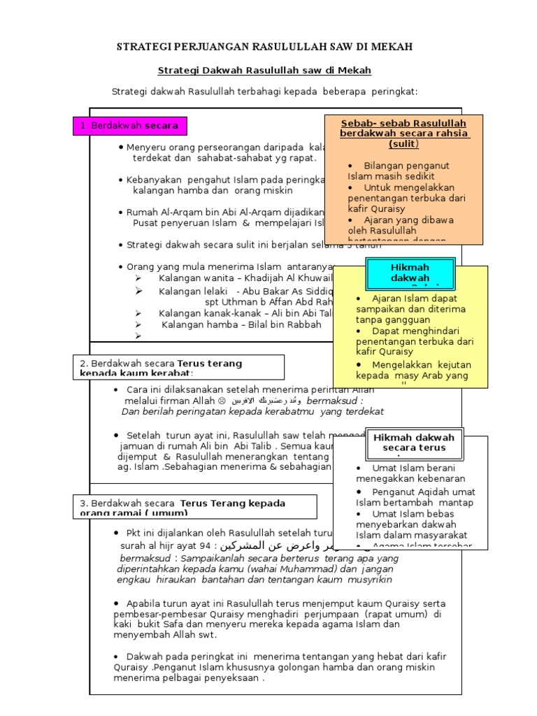 Dakwah yang dilakukan secara terang-terangan. BIDANG SIRAH Dakwah Rasulullah. Ianya juga dapat mengelakkan kejutan kepada masyarakat Arab yang mengamalkan kepercayaan dan.