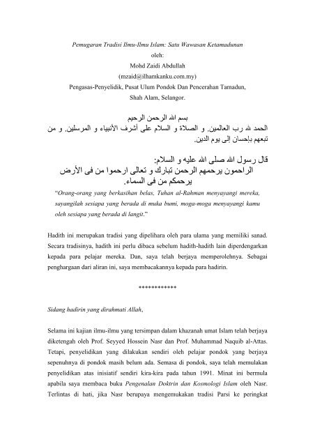 Intisari Dan Rahsia Tradisi Ilmu Ilmu Islam Ke Arah Pencerahan